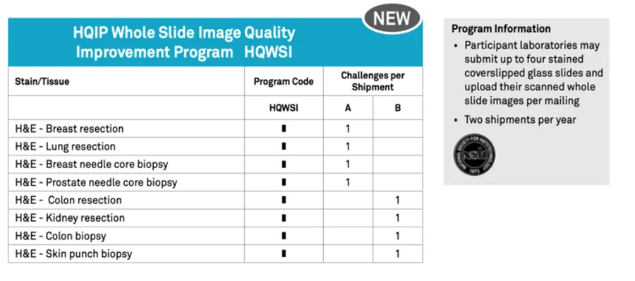 In the December 2018 issue of CAP Today, the College of American Pathologists and the National Society for Histology announced the 2019 release of a new quality improvement program called Whole Slide Image Quality Improvement Program. The program evaluates the quality of H&E sections cut and stained in a lab and the WSI scanned from that slide. The H&E slides are sent to CAP and the whole slide images are uploaded to CAP. Experts will then evaluate both the H&E and the WSI together. By having both the glass and the WSI, the reviewing experts will be able to determine if an identified quality issue is due to microtomy, staining or scanning and will suggest improvements. There are two challenges a year with four slides and WSI to prepare for each challenge. The program is available at the CAP.org in the 2019 Surveys Catalog.